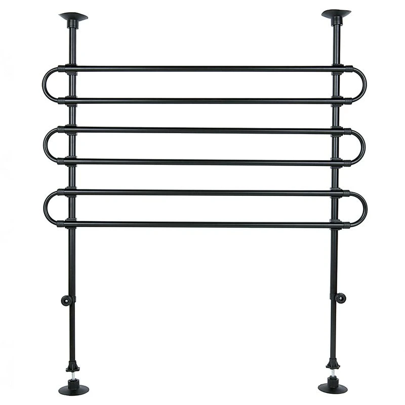 The dog guard is made of sturdy painted metal and can be used universally and is suitable for installation in smaller estate cars. The grille prevents your dog from entering the front part of the car and protects it in the event of an accident. It is infinitely adjustable and is clamped between the car floor and the roof by means of tension rods. The width can be adjusted by pulling out the horizontal bars