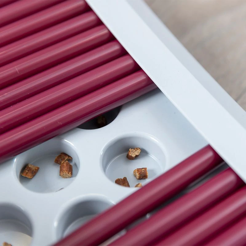 Are you looking for a way to challenge your cat’s curiosity and intelligence? The Trixie Cat Activity Rod Board is a fun board game for cats and is equipped with small spaces located under many sliding tubes in which you can hide small treats. Fishing them out with their paws provides your cat with lasting pleasure and a great activity!
