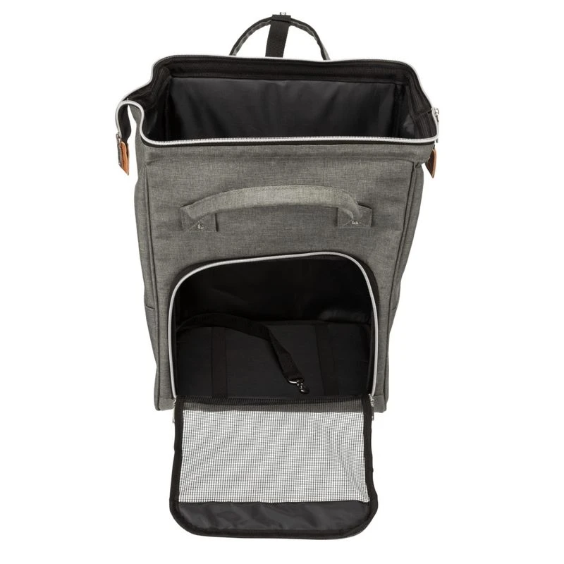 The Trixie Friends on Tour Ava Rucksack not only features a trendy design but is made to be robust. On the front, there is a large mesh window that ensures plenty of air circulates throughout. Your pet can enter either through a large, metal-reinforced opening at the top or through the front. The trolley mount is particularly practical when travelling, as it can be used to affix the Trixie Friends on Tour Ava Rucksack and wheel it along.