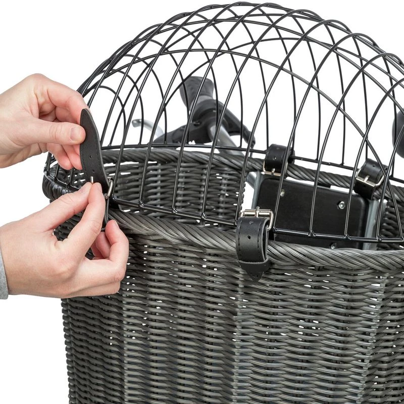The Trixie Front Bike Basket with Universal Holder has a protective mesh cover which is attached to the basket with synthetic leather straps. The cover keeps your dog safe in the basket and allows it to observe its surroundings. A removable cushion is included to ensure that your passenger is always comfortable.