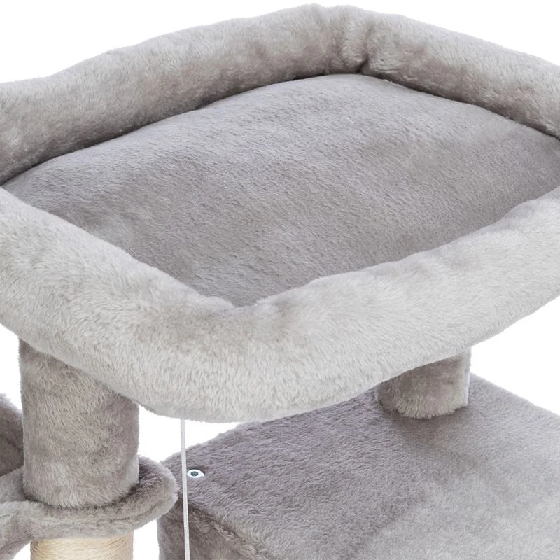 The scratching post offers various retreats for the perfect midday nap: the central cave with two entrances is not only a great place to hide, but also ideal for playful defence games against curious conspecifics. The dangling play ball provides additional entertainment, while the hanging lounger offers a cosy place to relax and watch.