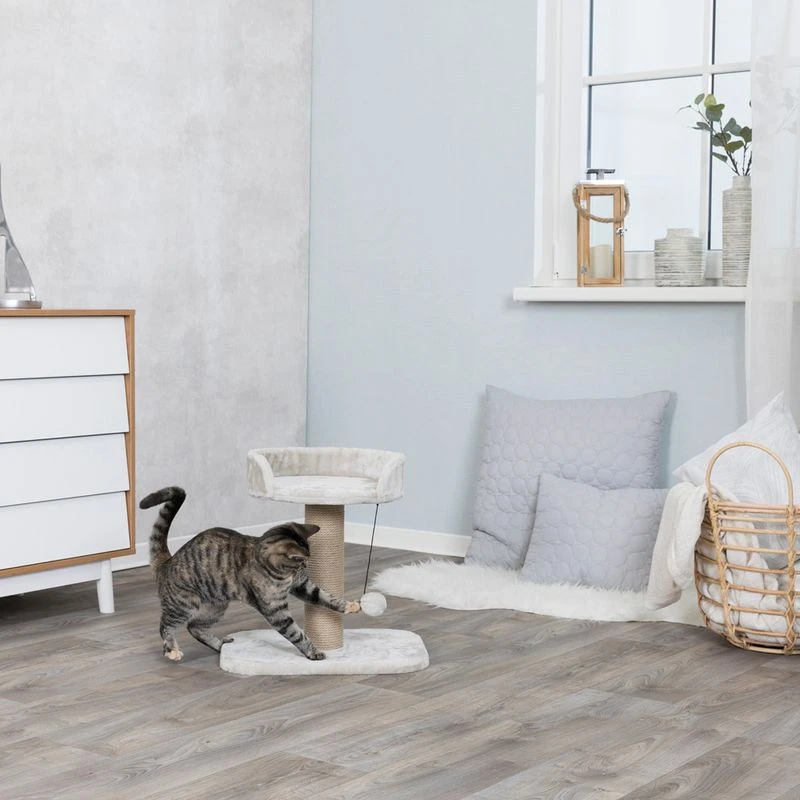 The Trixie Mica Scratching Post offers your tiger an ideal place to scratch, play and relax. The robust scratching post made of sisal invites your cat to sharpen its claws and helps to protect furniture. The large, cuddly bed with plush cover offers a cosy retreat where your cat can rest and watch the world go by.