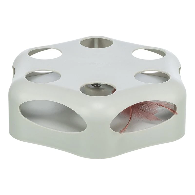 The Trixie Turning Feather Cat Toy will keep your cat entertained for hours, thanks to the unpredictability of the toy’s movements. The round and oval shaped treats can also be filled with treats to keep your cat interested for longer and encourage prolonged play. The anti-slip feet ensure that the toy will be stable and secure even on smooth floors. This cleverly designed battery-operated toy brings joy and activity to your cat’s daily routine.