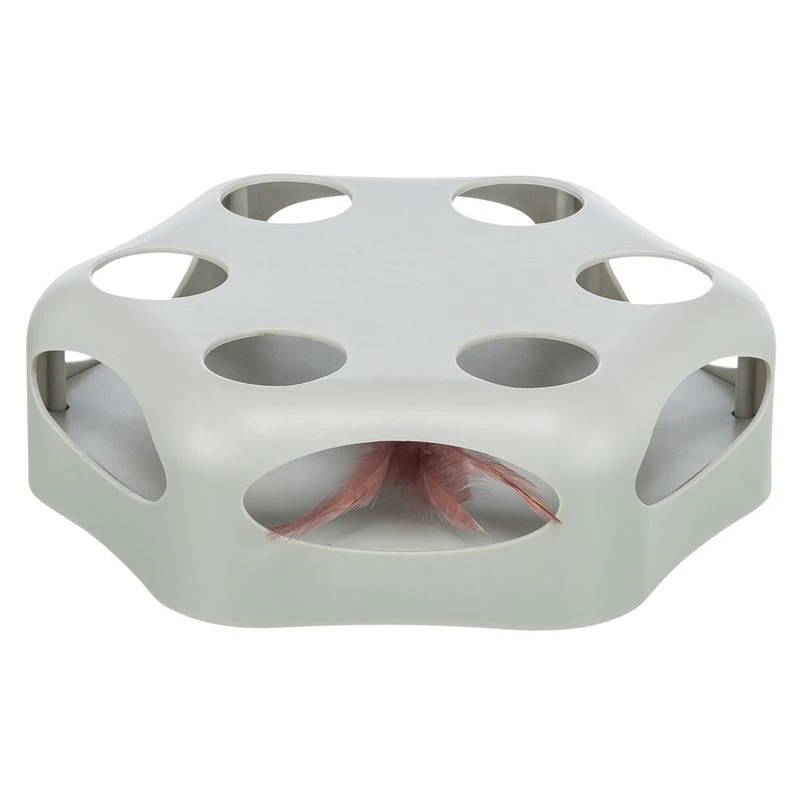 Awaken your cat’s natural hunting instincts with this Trixie Turning Feather Cat Toy, encouraging play and dexterity. Inside this six-edged plastic toy you will find moving feathers, activated by the press of a value to move wildly and unpredictably in changing directions. The different sized openings will encourage your cat to chase around the toy to try to reach inside and grab the feathers.