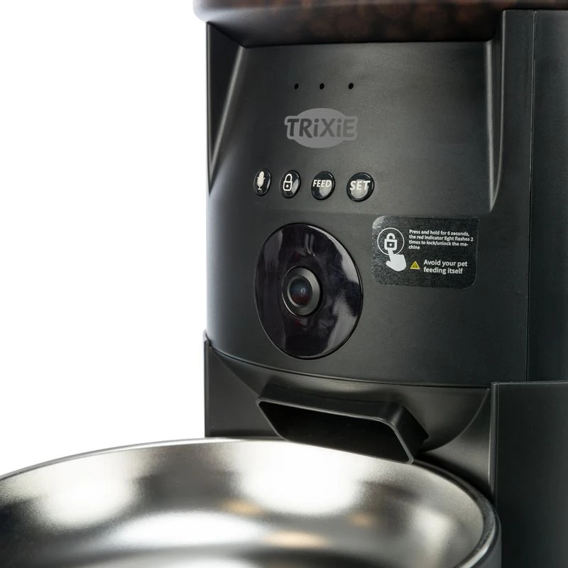 The Trixie TX-C Smart Automatic Feeder is an innovative companion for you and your animal friends. With the practical app control, you can programme up to 10 meals per day and adjust the amount of food individually. The integrated wide-angle camera allows you to take photos and videos at any time and even start a video live stream to keep an eye on your pet. A microphone and loudspeaker allow you to communicate directly with your dog or cat.